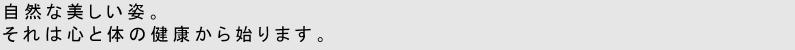 暑さや寒さにも不快と感じる現代社会のストレスが、人の本来あるべき自然な姿を失わせつつあり、健康への阻害は、はかりしれないものがあります。健康を取り戻すこと、それは、外面は自然体、内面は前向きに生きることにより、いつまでも若々しく輝けることだと考えます。それは、人が本来持つ自己再生能力を高めることで自らが健康とならなければなりません。